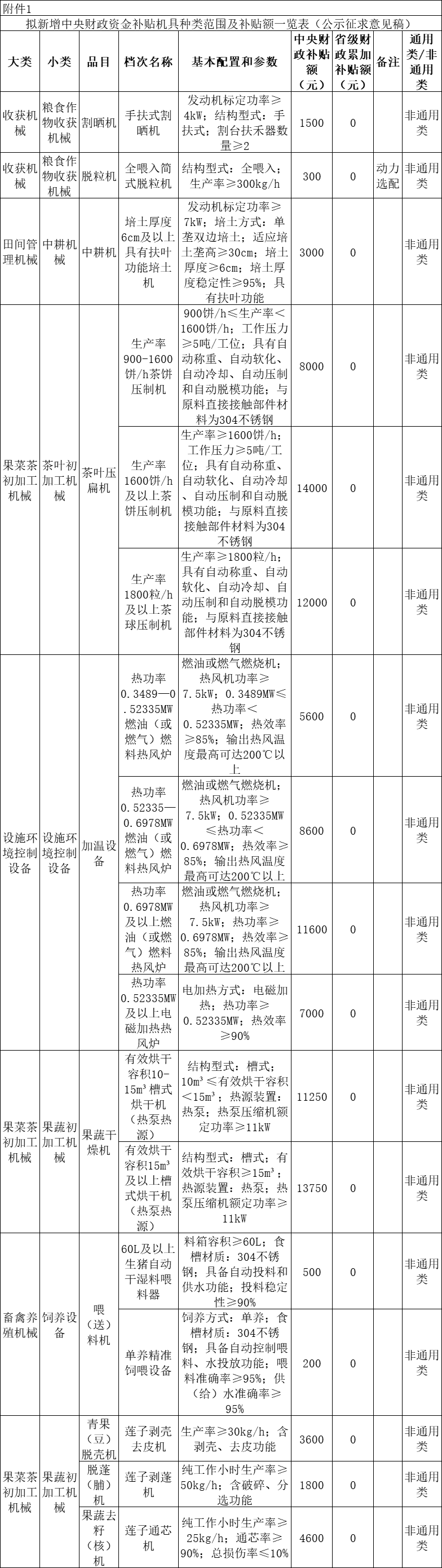 附件:1.擬新增中央財(cái)政資金補(bǔ)貼機(jī)具種類(lèi)范圍及補(bǔ)貼額一覽表(公示征求意見(jiàn)稿)