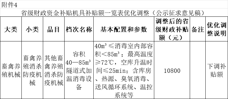 4.省級(jí)財(cái)政資金補(bǔ)貼機(jī)具補(bǔ)貼額一覽表優(yōu)化調(diào)整(公示征求意見(jiàn)稿)